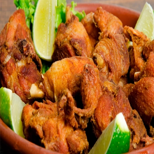 Espetinho de frango, Bacon em tiras, Arroz, Mandioca, Farofa, Vinagrete