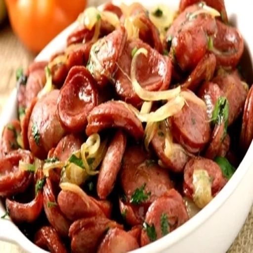 300g de Batata, 200g Calabresa, 300g isca de carne, cebola frita e pão